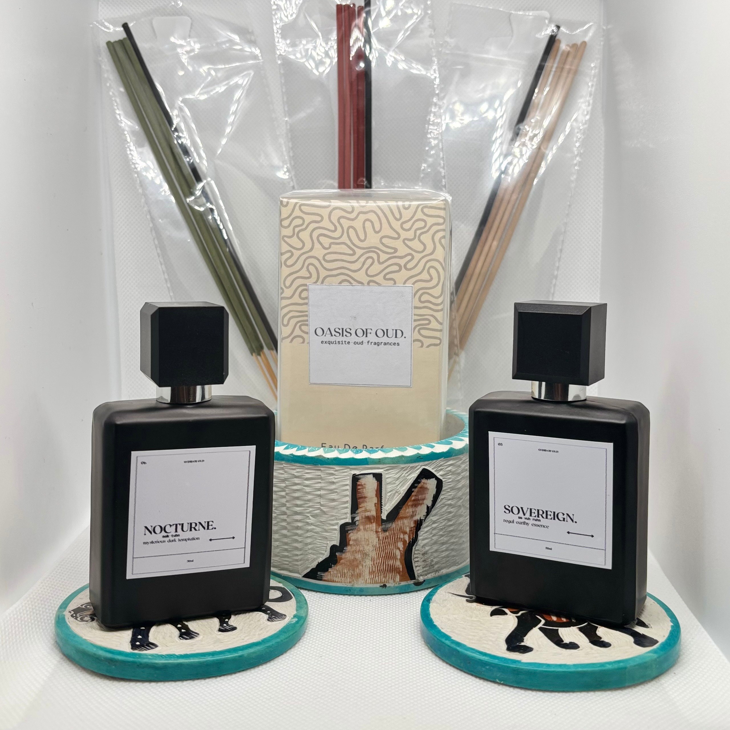 A OASIS OF OUD LIMITED EDITION. Two scents. One story. Designed for connection, closeness, and memory. A Valentine ritual for those who celebrate love boldly. Perfect for couples!